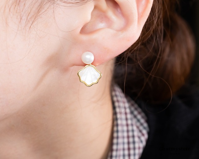 貝殻モチーフのアクセサリー。ハワイアンジュエリーのように海にちなみデザインされた大人可愛いを演出。ピアスとイヤリング展開。 ■Color:Gold ■素材:銅+金メッキ+シェル+パール
