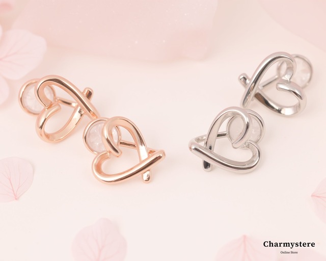ハートのラインを描いたシンプルながらエレガントでキュートなアイテム。 さりげない可愛らしさを演出し上品なコーデに◎ ■Color:Silver / Pink ■素材:銅+銀メッキ