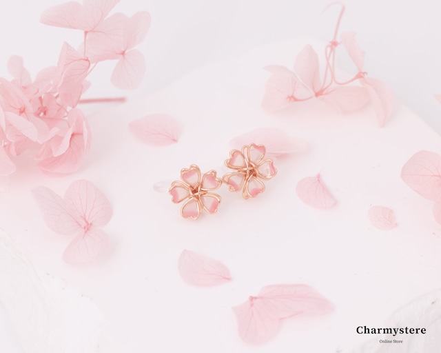 立体感のあるサクラモチーフに、艶やかで桜の美しいグラデーションの色味を再現した上品でフェミニンなイヤリングに。顔まわりを優しい印象に。 ■Color:Pink ■素材:銅+金メッキ+琺瑯(ほうろう)