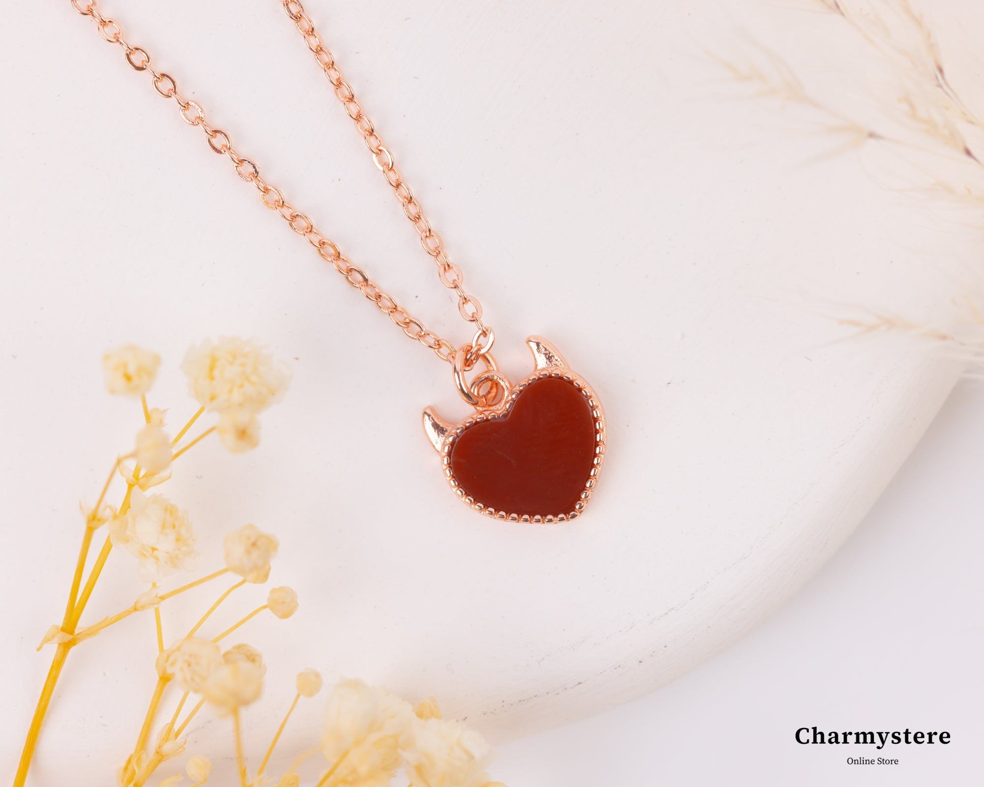 小悪魔なハートをイメージしたあざと可愛いなネックレス。情熱的な赤いハートのペンダントが特徴で、優雅で魅力的なデザインが魅力です。特別な日やカジュアルなシーンにぴったりの一品です。