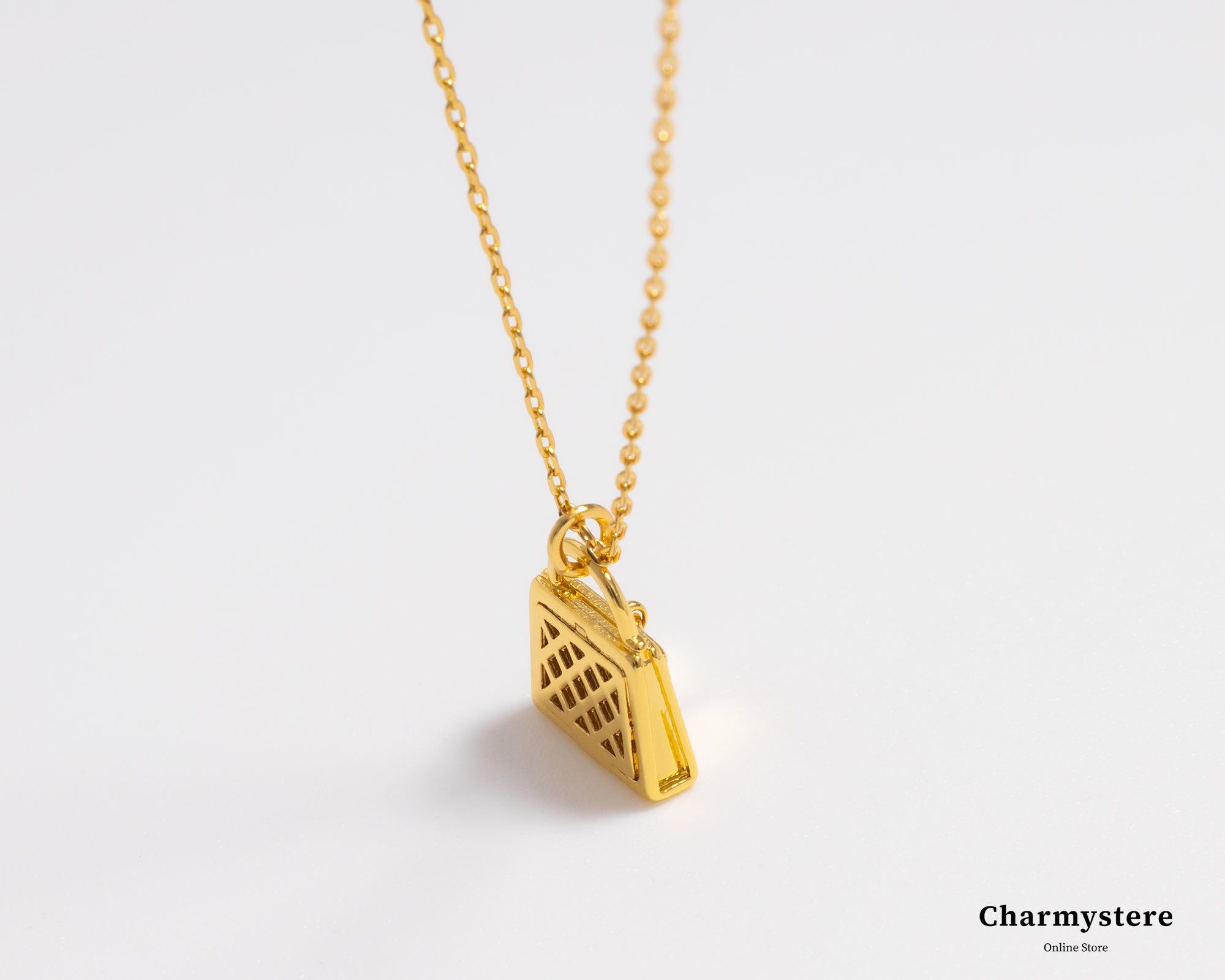 バッグモチーフのチャームが可愛いネックレス。
