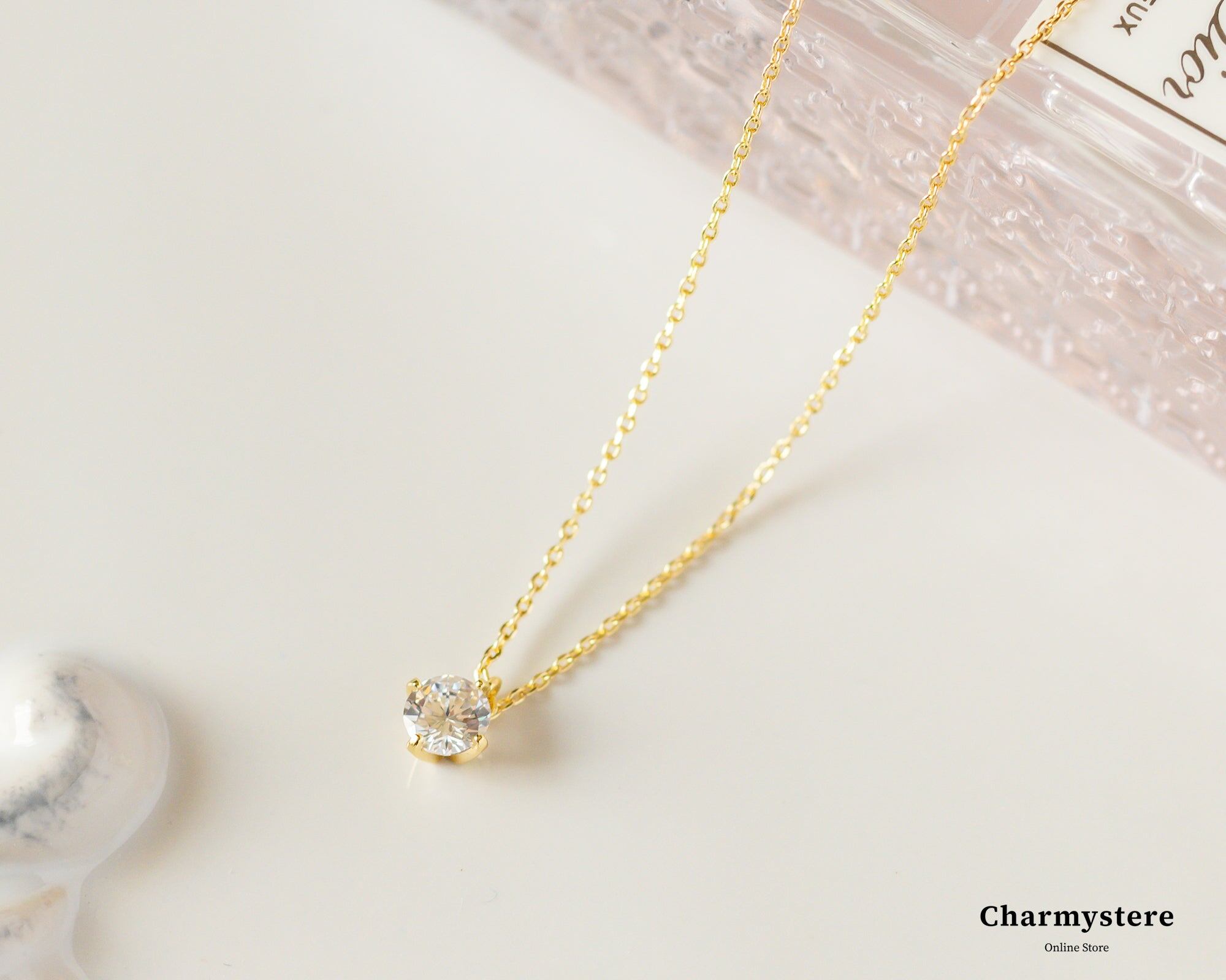 一粒のストーンを埋め込んだシンプルで王道なデザインネックレス。