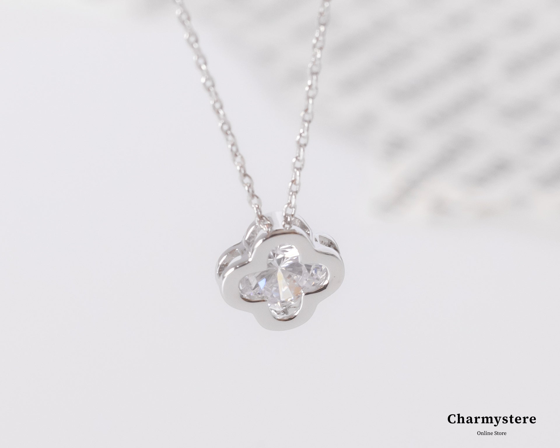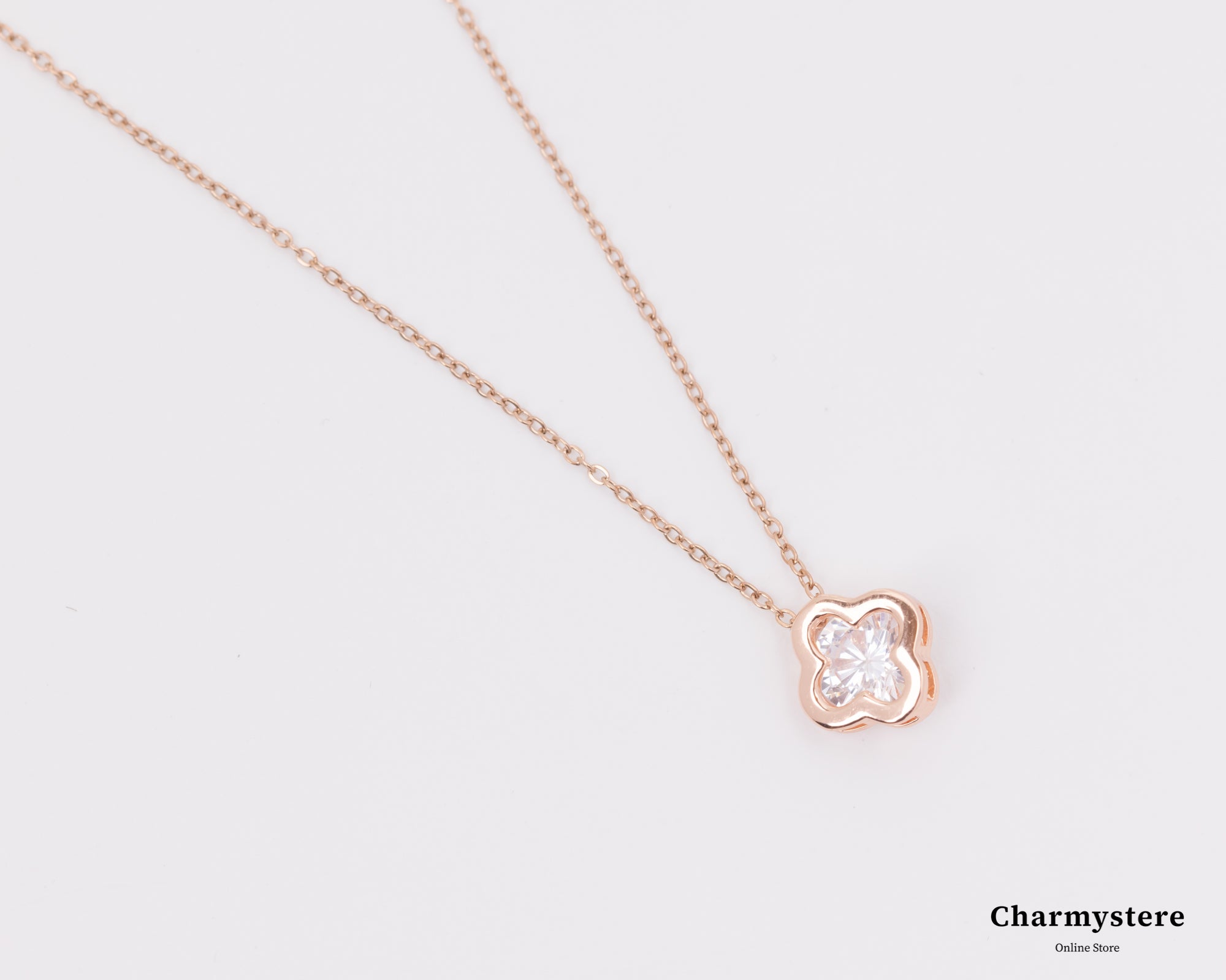 フラワーモチーフにジルコンが埋め込まれた高級感溢れるネックレス横から見ても美しく、デコルテのワンポイントに。