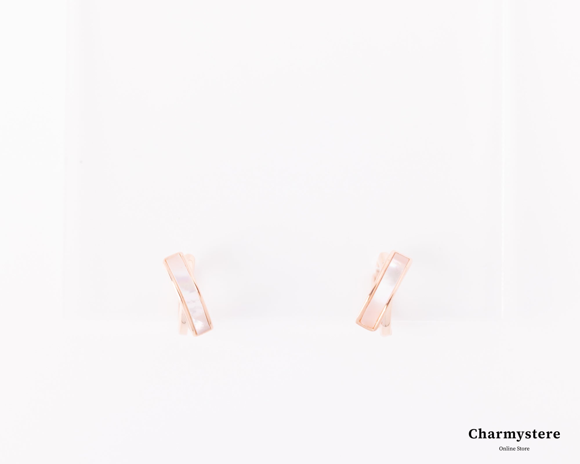 このエレガントなホワイトシェルを用いたクロスしたデザインは、シンプルで洗練され、上品な光沢を放ちます。