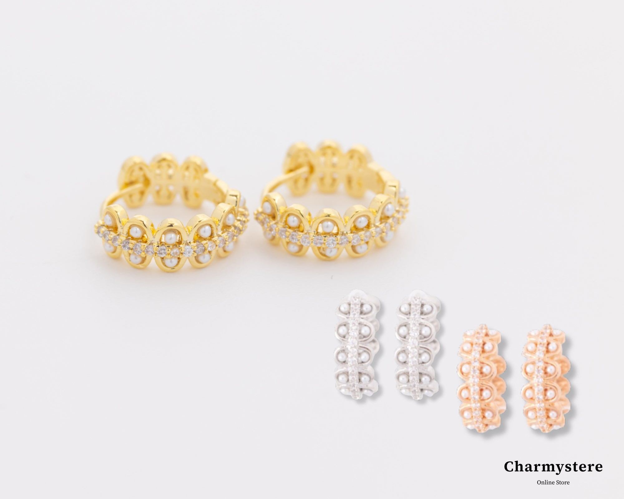 ■素材:銅+金メッキ+ジルコン+パール+925シルバー(ポスト)
