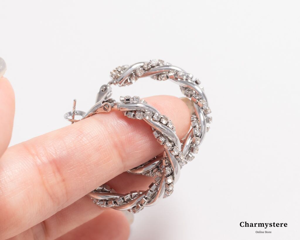 ストーンが散りばめられたラインと一緒にツイストされたデザインになっており顔周りにアクセントをプラス。